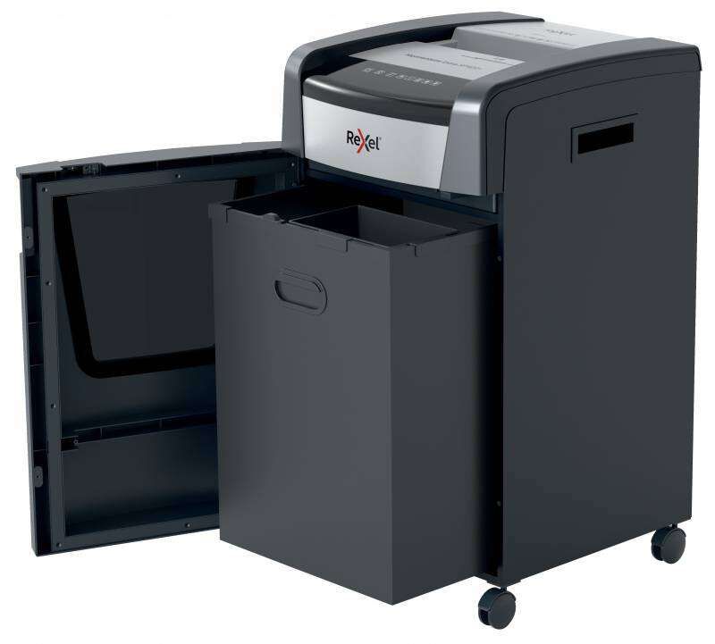 Además de papel, esta máquina también puede destruir tarjetas de crédito, grapas, clips y CDs/DVDs. Cuenta con una papelera extraíble de 85L de capacidad, lo que facilita el vaciado. También ofrece un tiempo de funcionamiento continuo gracias a su sistema de refrigeración por ventilador y cuenta con un modo ECO para ahorrar energía cuando no está en uso.