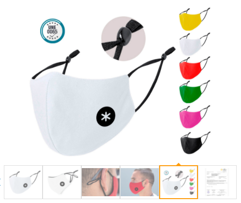 6646 / 159764 MASCARILLA FACIAL HIGIENICA ANTARTIK POLIESTER REUTILIZABLE 2 CAPAS 25 LAVADOS COLOR BLANCO 24X13,5 en Pack 10 uds #COVID